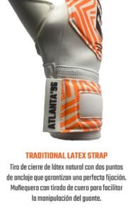Dorso reforzado en las zonas de impacto. Planchas de látex situadas estratégicamente en el dorso para mitigar el impacto y potenciar los despejes de puños. Cuerpo de látex en el dorso que se ajusta a la mano dando seguridad y una sensación de armado.