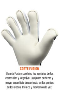 Combinación de las ventajas del corte Negativo y corte Flat. Un ajuste perfecto en la parte baja de los dedos y un corte flat en las puntas que aportan mayor superficie de contacto que ayudará a la hora de blocar el balón. Un corte cómodo que es moderno y clásico a la vez.