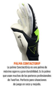 Palma de máximo rendimiento suministrada a nuestros porteros patrocinados para competir en ligas profesionales. Palma de competición con el mejor agarre en cualquier condición climática. 3.5mm látex German ContactGrip + 4mm foam. Sensación de agarre firme. Gel interno Anti-Slip para aumentar el tacto con el balón y limitar los micro-movimientos de la mano dentro del guante.