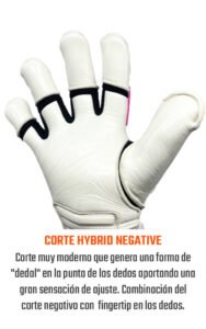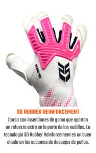 Dorso reforzado en las zonas de impacto Incrustaciones de goma situadas estratégicamente en el dorso para mitigar el impacto y potenciar los despejes de puños. Dorso de neopreno que se ajusta a la mano como una segunda piel.