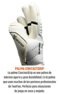 Palma de máximo rendimiento suministrada a nuestros porteros patrocinados para competir en ligas profesionales. Palma de competición con el mejor agarre en cualquier condición climática. 3.5mm látex German ContactGrip + 4mm foam. Sensación de agarre firme. Gel interno Anti-Slip para aumentar el tacto con el balón y limitar los micro-movimientos de la mano dentro del guante.
